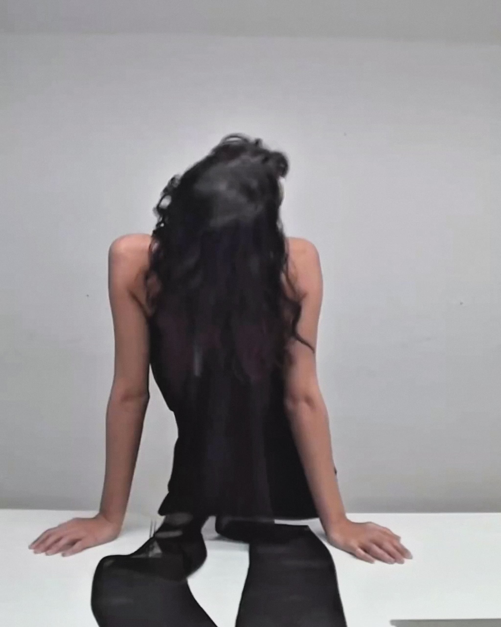 Eloise blends sensual transparency with a sculptural high neck finished by an extra-long scarf that cascades dramatically down the back